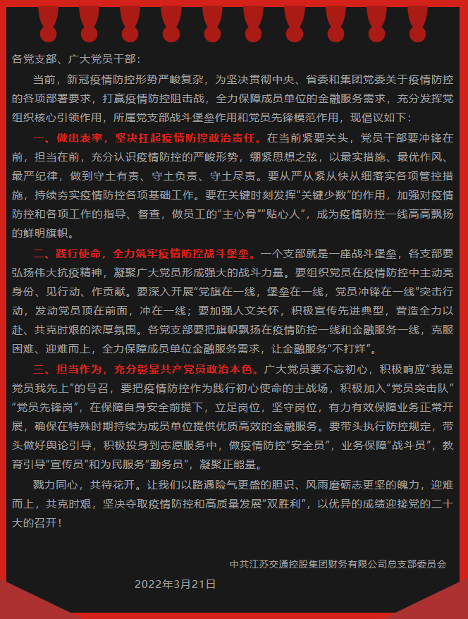 同心战疫 共待花开——致各党支部、广大党员干部的倡议书