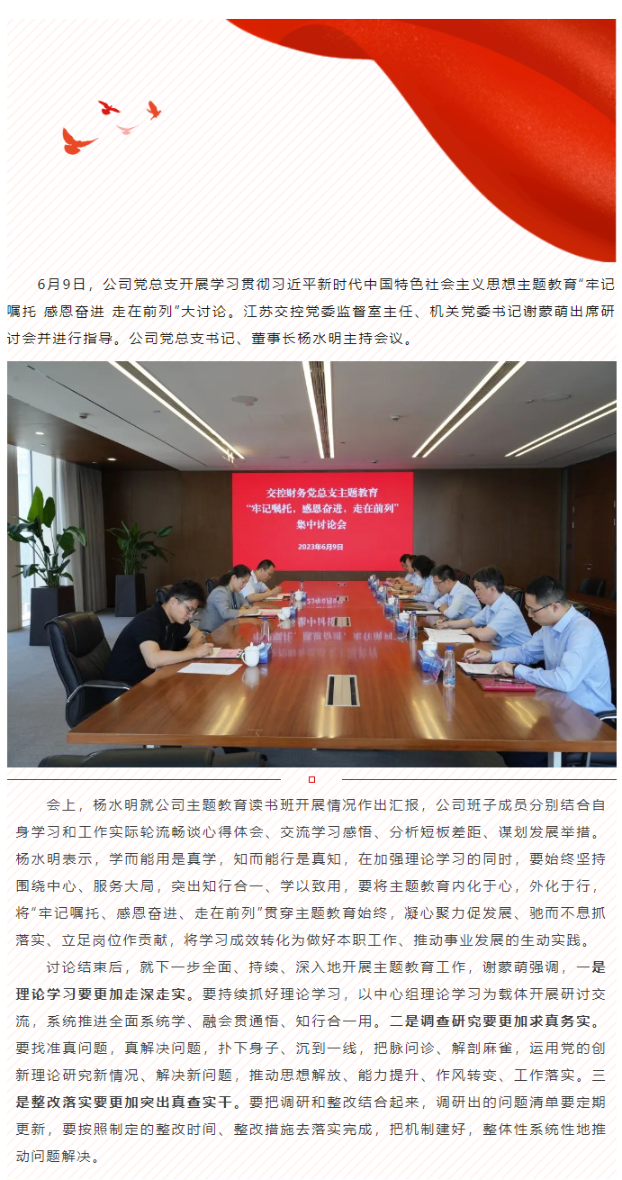 交控财务开展“牢记嘱托,感恩奋进,走在前列”大讨论