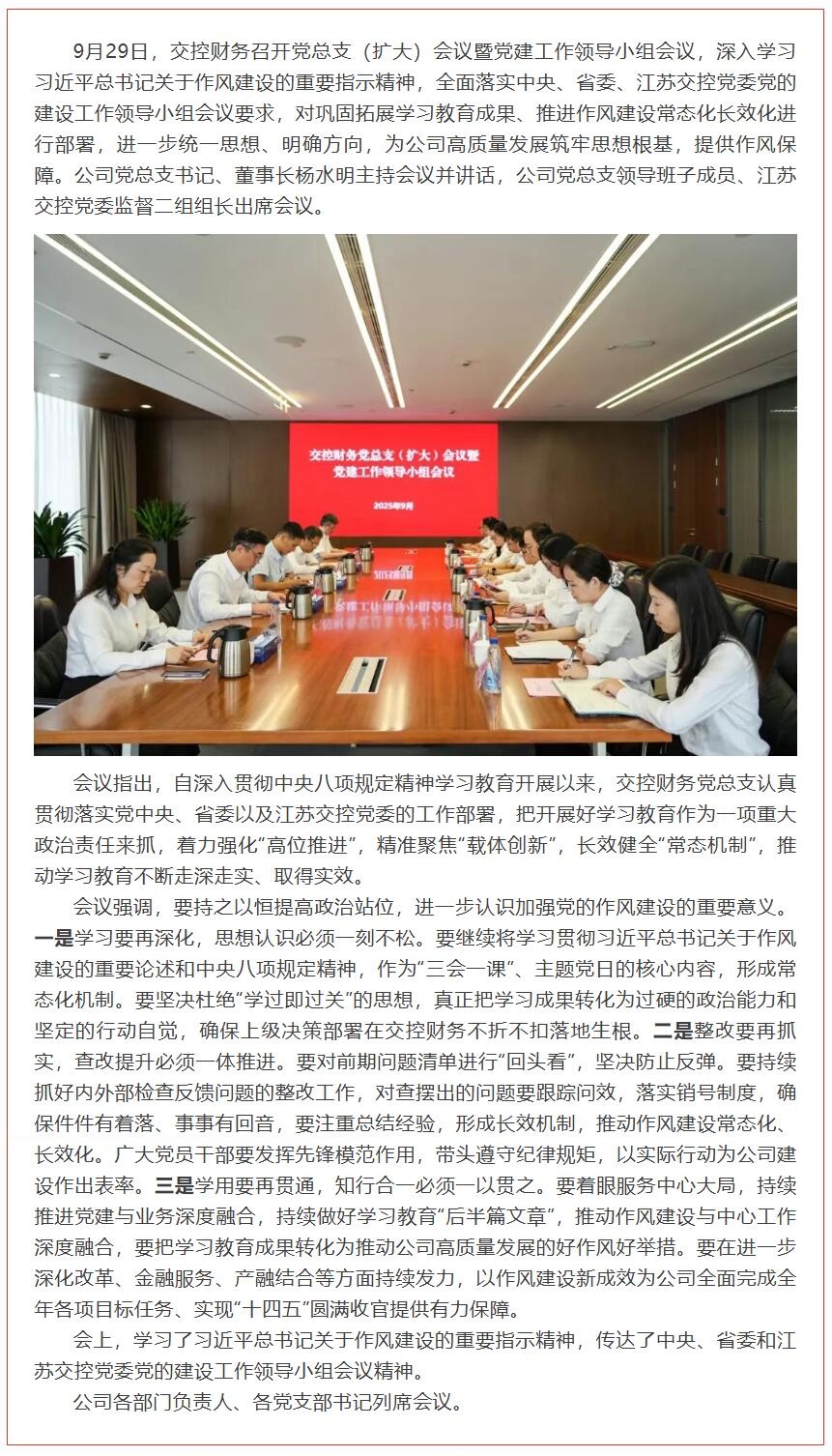 交控财务召开党总支(扩大)会议暨党的建设工作领导小组会议
