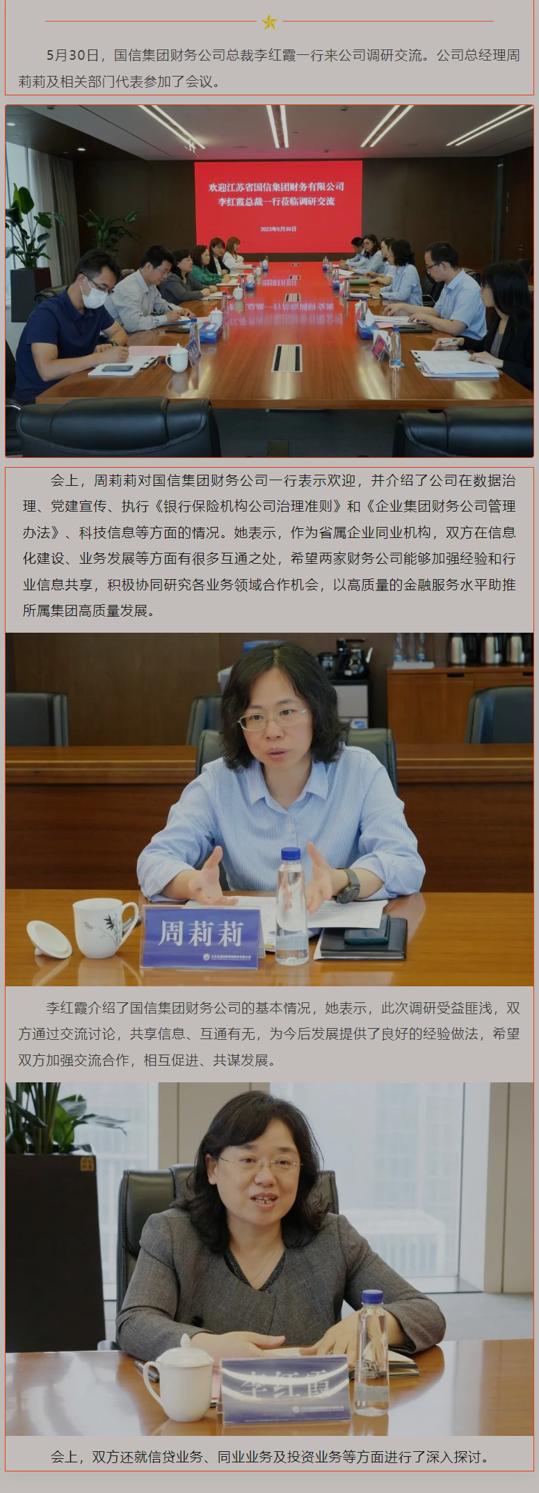 国信集团财务公司总裁李红霞一行来公司调研交流