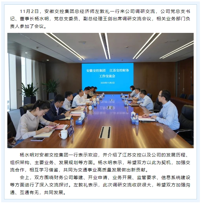 安徽交控集团总经济师左敦礼一行来公司调研交流