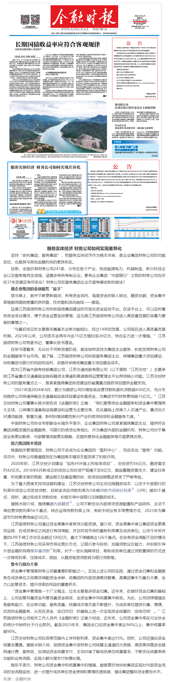 聚焦服务实体,《金融日报》头版报道交控财务做法