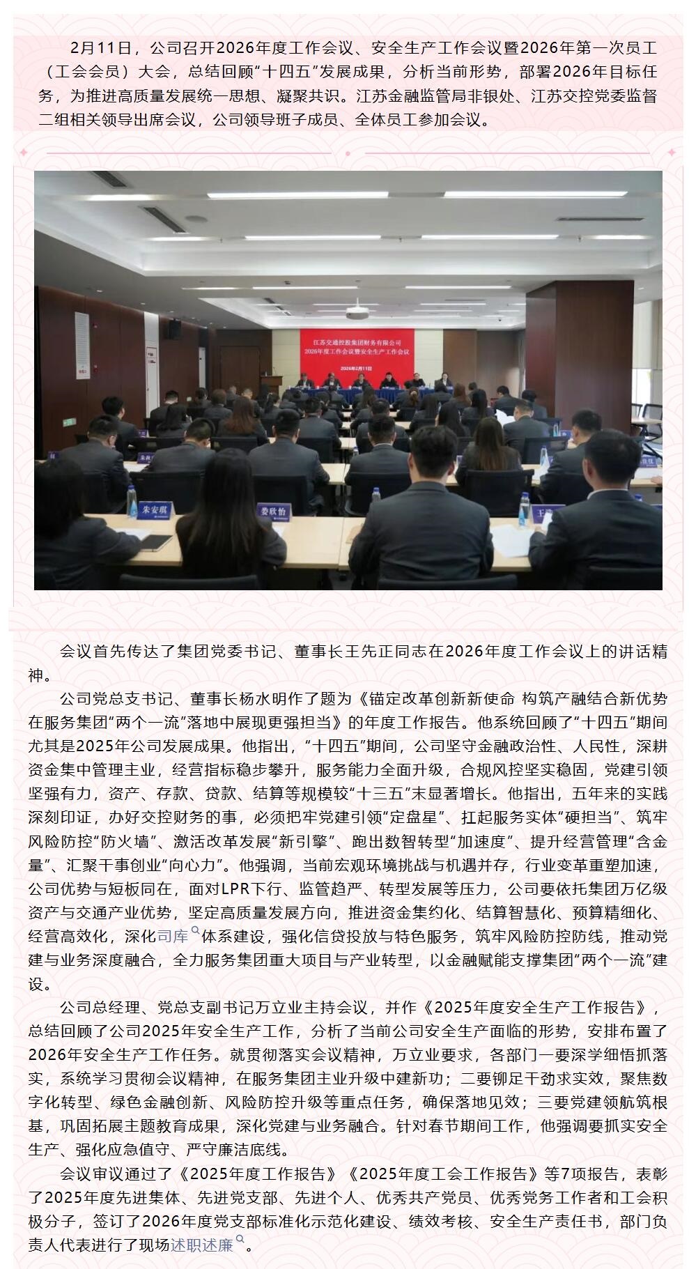 公司召开2026年度工作会议、安全生产工作会议暨2026年第一次员工(工会会员)大会