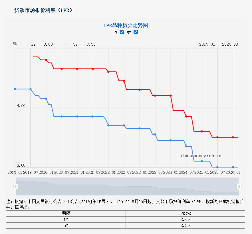 最新LPR利率(2026年3月20日)