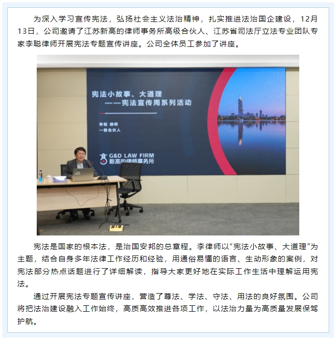 公司开展宪法宣传专题讲座